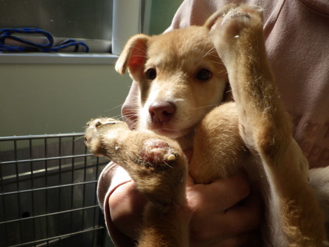 野犬の仔犬なのでビビリですが、体を触ってもそんなに嫌がりません
